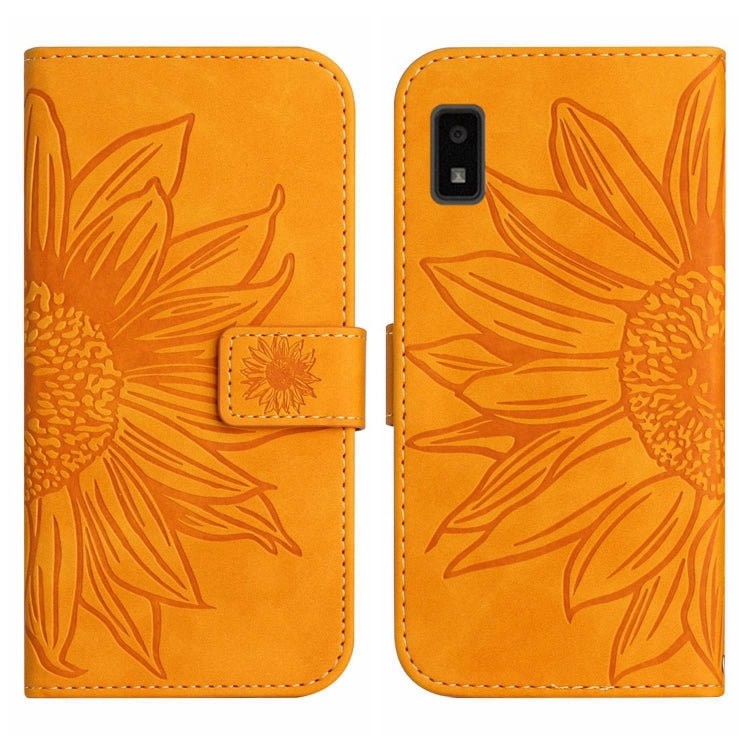 Funda de Cuero Flip para Sharp Aquos Wish con Cordón y Patrón Sun Flower (Amarillo)