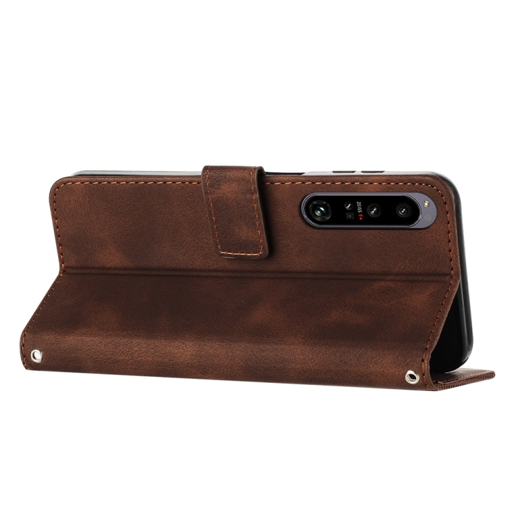 Funda de Cuero para Sony Xperia 1 IV Dream Triangle con Cordón (Marrón)