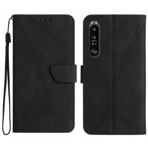 Estuche para teléfono Sony Xperia 1 V de cuero con costuras en relieve (Negro)