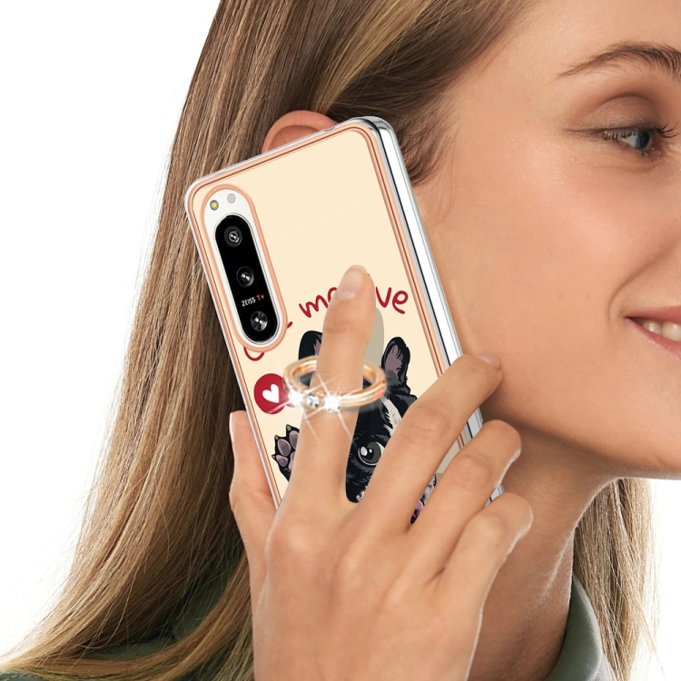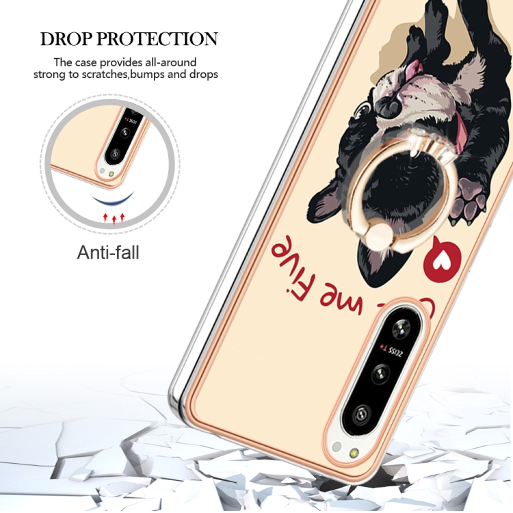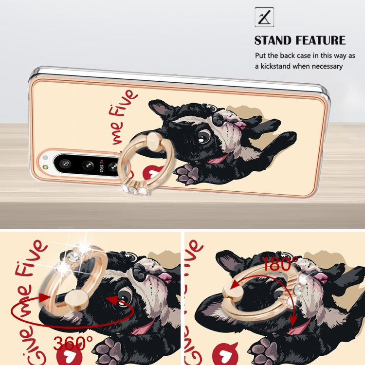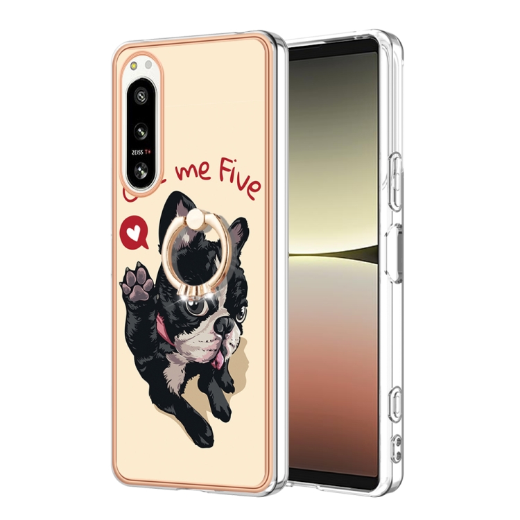 Funda para Sony Xperia 5 IV Galvanoplastia IMD Doble Cara con Soporte para Anillo (Lucky Dog)