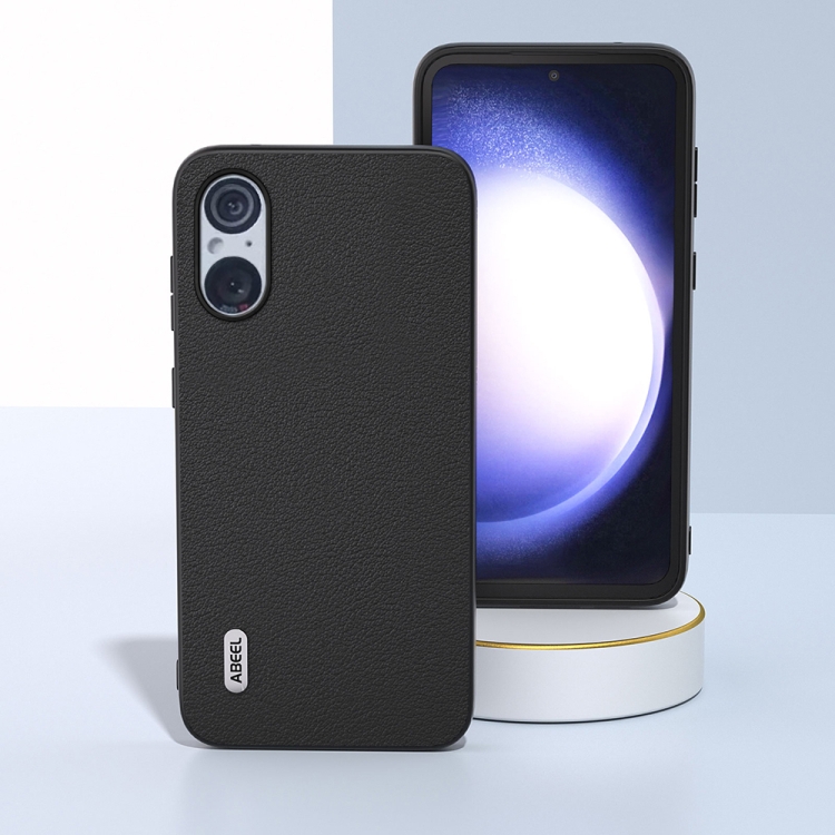 Funda para Sony Xperia 5 V Abeel con Borde Ondulado de Cuero Genuino (Negro)