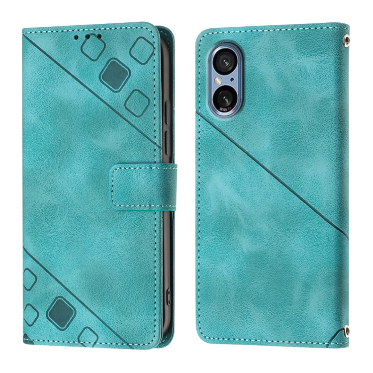 Funda de Cuero para Sony Xperia 5 V con Relieve y Sensación de Piel (Verde)