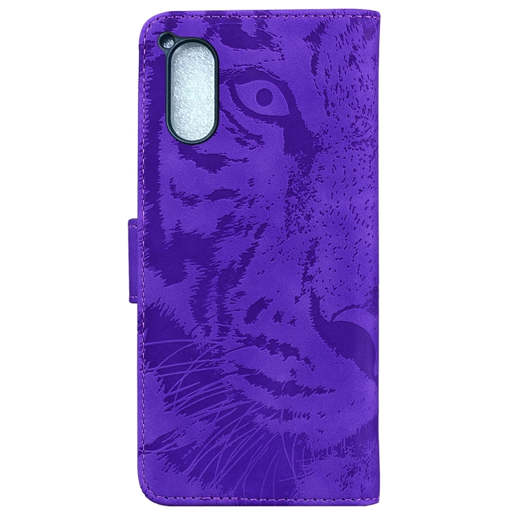 Funda Flip de Cuero Sony Xperia 5 V con Patrón Tiger Embossing (Púrpura)