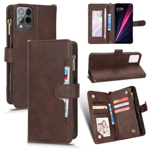 Funda de Cuero con Cremallera para T-Mobile Revvl 6 Pro 5G Litchi Texture (Marrón)