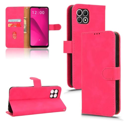 Funda de Cuero para T-Mobile Revvl 7 5G con Tapa Magnética (Rojo Rosa)