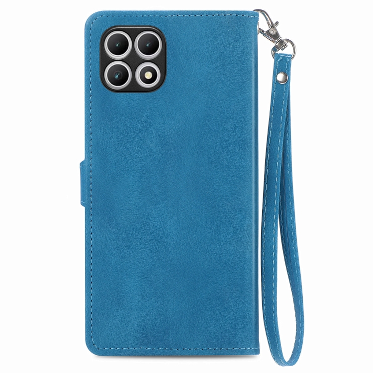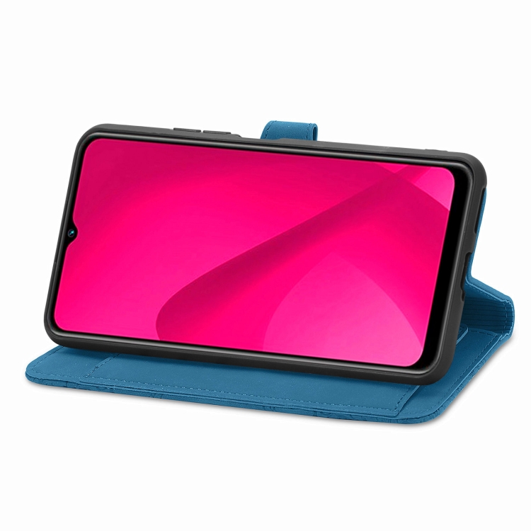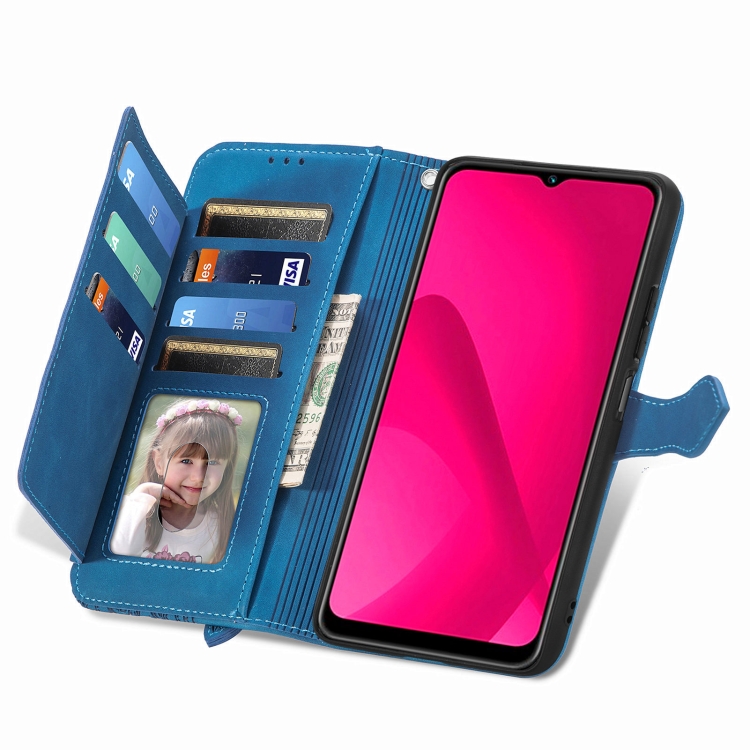 Funda de Cuero para T-Mobile Revvl 7 Pro 5G con Cremallera y Flor en Relieve (Azul)