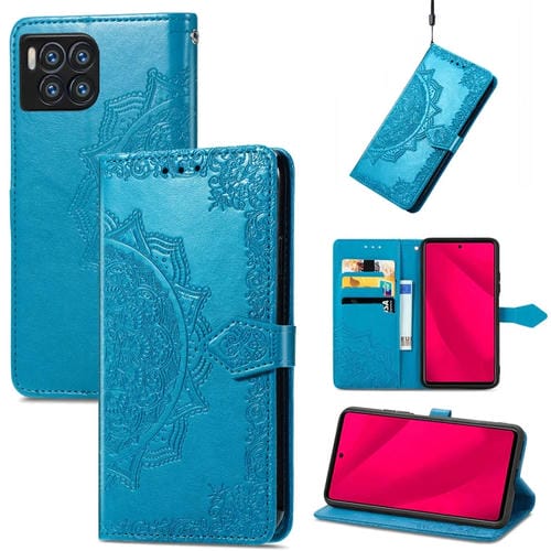 Funda para Teléfono T-Mobile Revvl 7 Pro 5G Cuero con Relieve de Flor de Mandala (Azul)