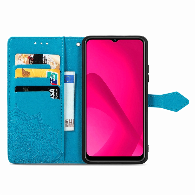 Funda para Teléfono T-Mobile T Phone 2 Pro 5G Cuero con Relieve Flor de Mandala (Azul)