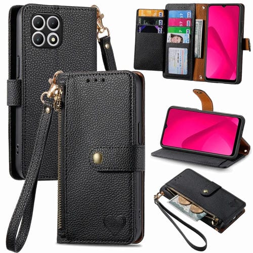 Funda de Cuero para T-Mobile T Phone 2 Pro 5G con Lanyard y Zipper (Negro)
