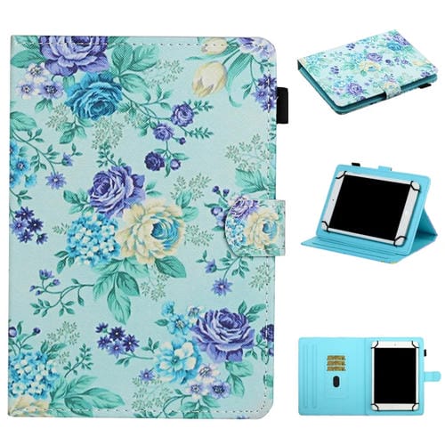- 1x Funda Cuero Universal para Tablet PC 8 Pulgadas con Tapa Horizontal, Ranuras para Tarjetas y Soporte (Flor Morada)