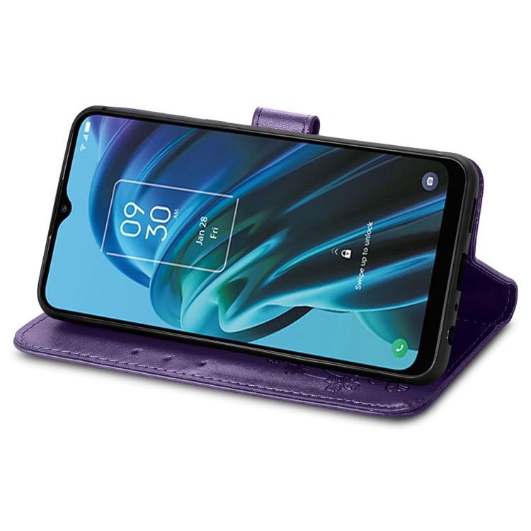 Funda para TCL 30 Xe 5G de Cuero con Hebilla y Cierre de Cuatro Hojas (Púrpura)