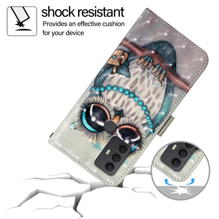 Funda de Cuero para TCL 306 con Tapa Horizontal y Pintura 3D Búho (Gris)