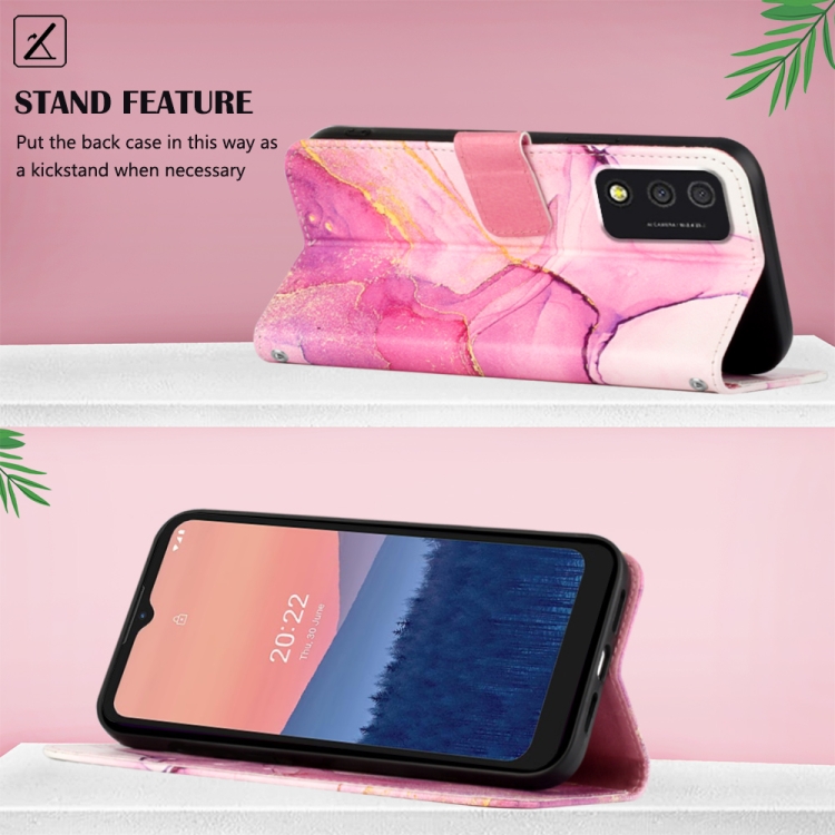 Funda de teléfono para TCL 30T T603Dl Pt003 con tapa de cuero y patrón de mármol (Rosa Púrpura Dorado)