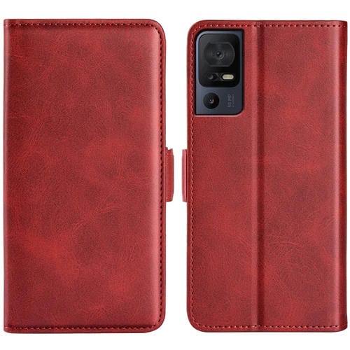 Funda de Cuero para TCL 40 Se con Hebilla Magnética de Doble Cara (Rojo)