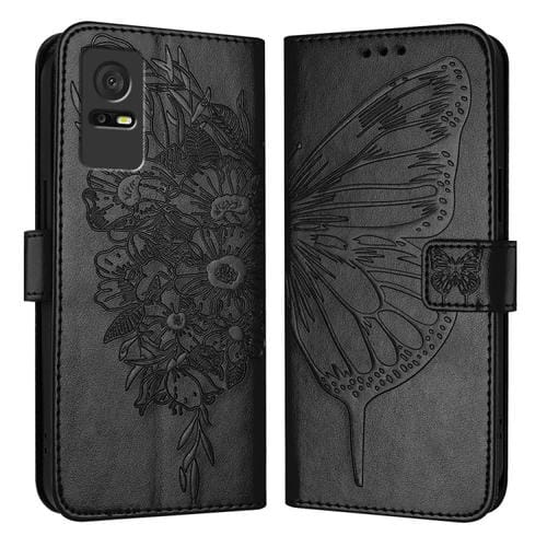 Funda de Cuero para TCL 405/406/408 con Mariposa en Relieve (Negro)