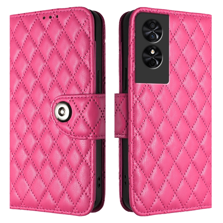 Funda para TCL 50 Se de Cuero con Tapa Textura Rómbica y Cordón (Rojo Rosa)