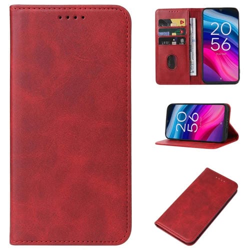 Funda de Cuero para Teléfono TCL 505 con Cierre Magnético (Rojo)