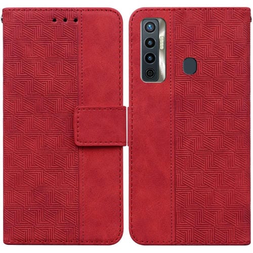 Funda de Cuero para Tecno Camon 17 Geométrico En Relieve (Rojo)