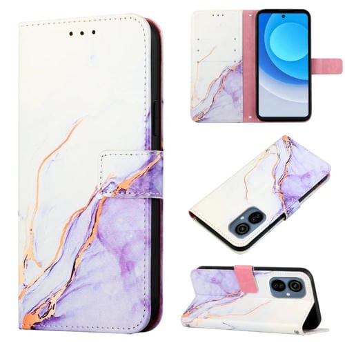 Funda de Cuero con Tapa para Tecno Camon 19 Neo Pt003 Patrón Mármol (Blanco Púrpura)