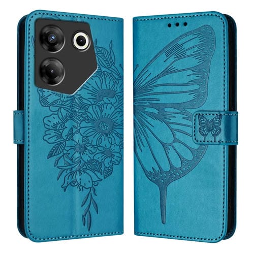 Funda de Cuero para Tecno Camon 20 Pro 5G con Mariposa en Relieve (Azul)