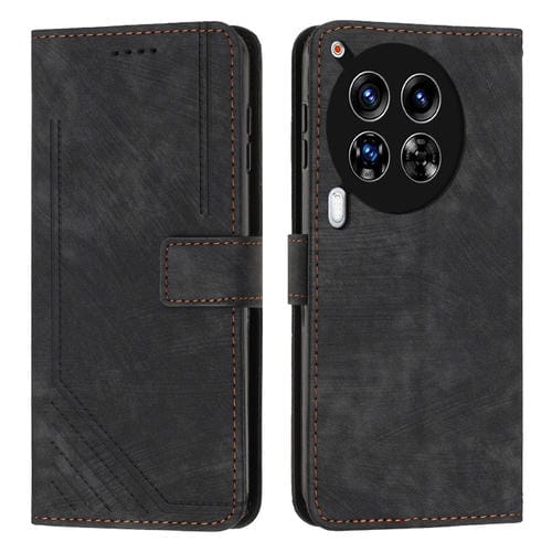 Funda de Cuero para Tecno Camon 30 4G / 5G Skin Feel con Patrón de Rayas y Cordón Largo (Negro)
