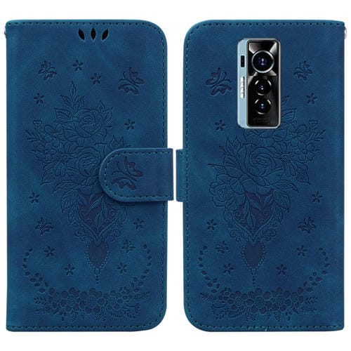 Funda de cuero para Tecno Phantom X Butterfly Rose (Azul)
