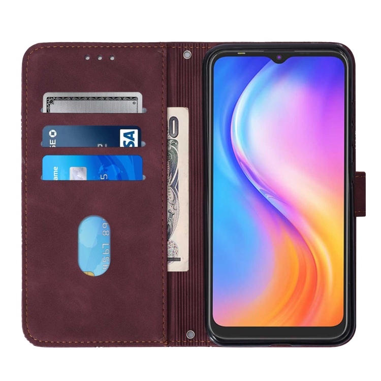 Funda de Cuero para Tecno Pop 4 Pro Crossbody 3D con Goma En Relieve (Rojo de Vino)