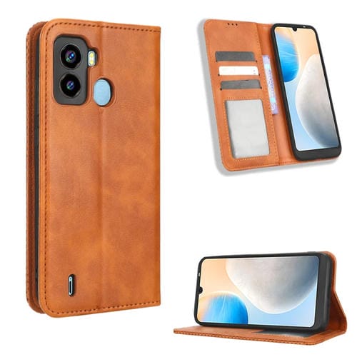 Funda de Cuero con Hebilla Magnética para Tecno Pop 6 Be7 Textura Retro (Marrón)