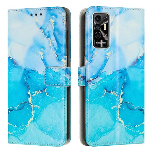 Funda de Cuero para Tecno Pova 2 con Patrón de Mármol Pintado (Azul Verde)