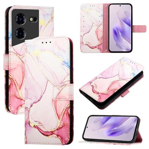 Funda de Cuero con Tapa para Tecno Pova 5 4G Pt003 con Patrón de Mármol (Oro Rosa)