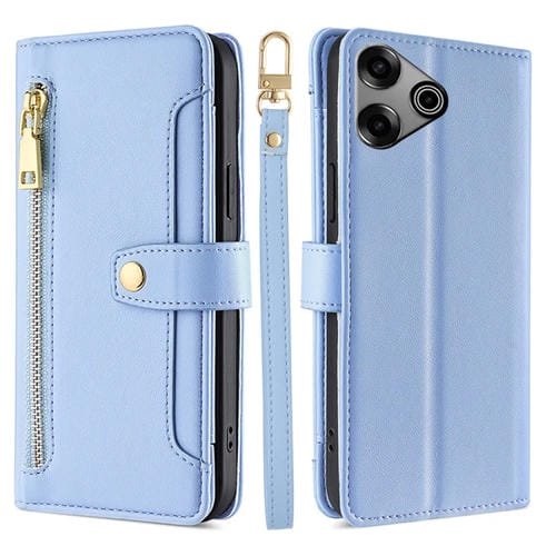Funda de Cuero para Tecno Pova 6 Pro 5G con Billetera, Cremallera y Textura de Oveja (Azul)