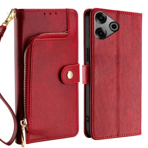 Funda de Cuero para Tecno Pova 6 Pro 5G con Bolsa y Cremallera (Rojo)