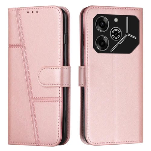Funda para Tecno Pova 6 Pro de Cuero con Hebilla y Textura de Becerro (Oro Rosa)