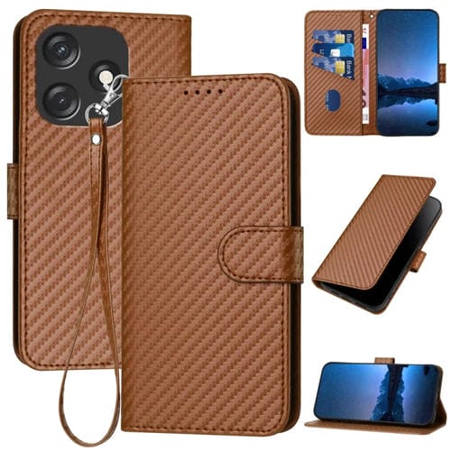 Funda para Tecno Spark 10C Yx0070 de Cuero con Hebilla de Fibra de Carbono y Cordón (Café)