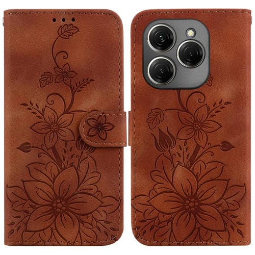 Funda de Cuero en Relieve para Tecno Spark 20 Lily para Teléfono (Marrón)