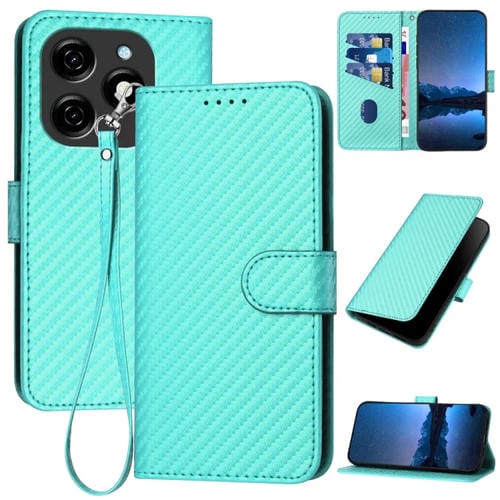 Funda de Cuero para Tecno Spark 20 Yx0070 con Hebilla de Fibra de Carbono y Cordón (Azul Claro)