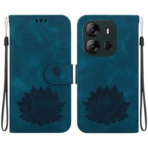 Funda de Cuero para Tecno Spark Go 2023 y Pop 7 Pro con Relieve de Loto (Azul Oscuro)
