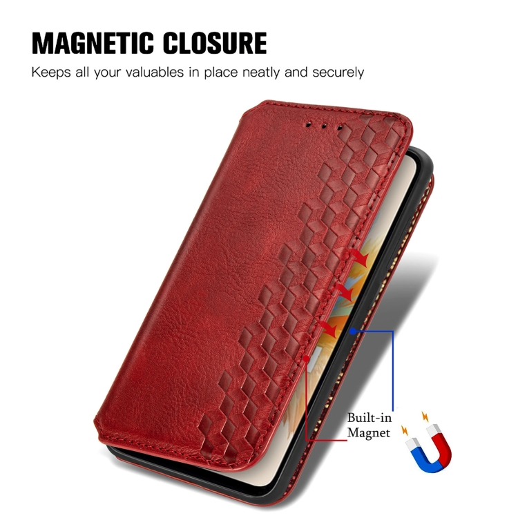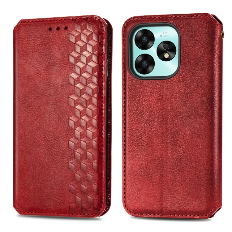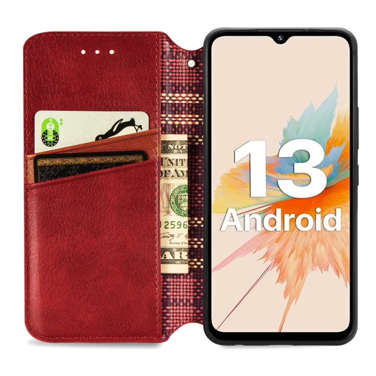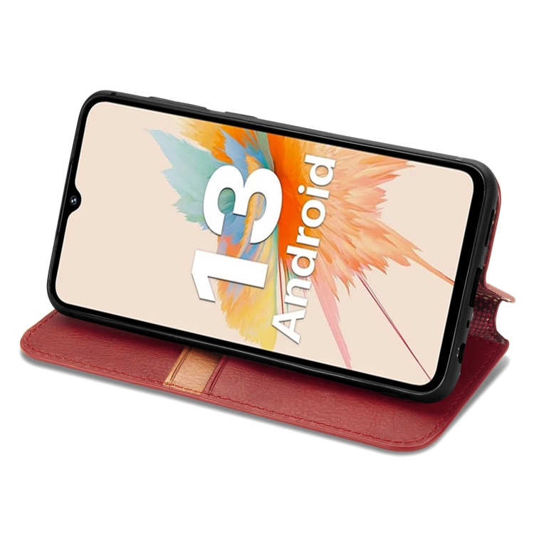 Funda para Umidige A15 Cubic Grid de Cuero Magnético Prensado (Rojo)