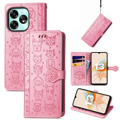 Funda para Umidigi G5 y G5A de Cuero con Relieve de Perros y Gatos (Rosa)