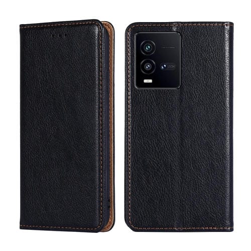 Para Vivo Iqoo 10 Estuche para Teléfono de Cuero Magnético de Color Sólido con Aceite Brillante (Negro)