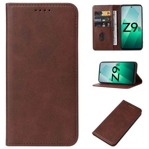 Para Vivo Iqoo Z9 Funda de Cuero para Teléfono con Cierre Magnético (Marrón)