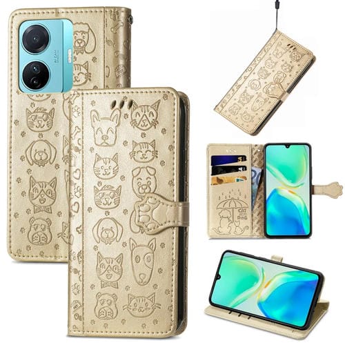 Para Vivo S15E Cat And Dog Funda de Cuero para Teléfono En Relieve (Oro)
