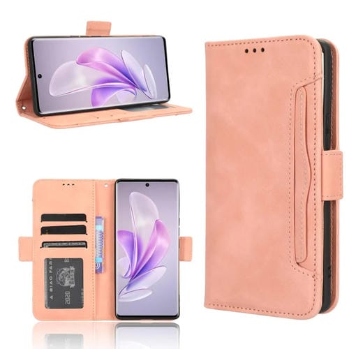 Para Vivo S17 5G / S17 Pro Skin Feel Becerro Textura Ranuras para Tarjetas Funda de Cuero para Teléfono (Rosa)