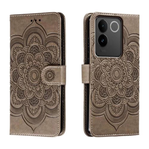 Para Vivo S17E Sun Mandala Funda de Cuero para Teléfono con Patrón En Relieve (Gris)