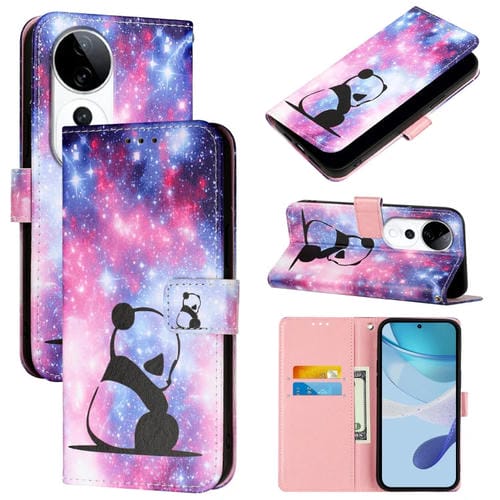 Para Vivo S19 Pro Funda para Teléfono de Cuero de Tejido Liso con Patrón de Dibujo de Colores (Baby Panda)