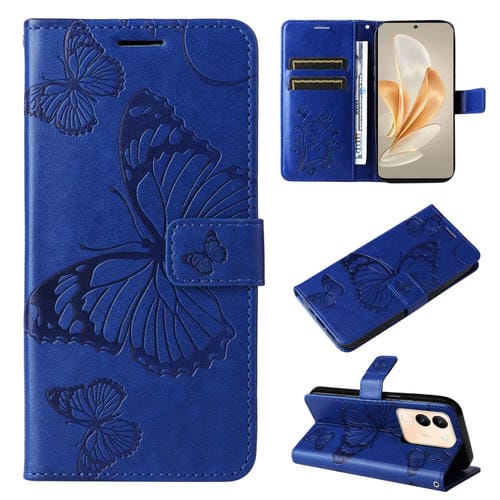 Para Vivo V29E Global / Y200 5G Global Funda para Teléfono de Cuero con Tapa En Relieve con Mariposa 3D (Azul)
