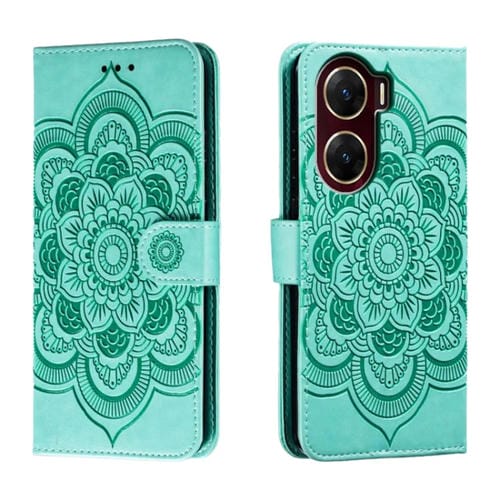 Para Vivo V29E Sun Mandala Funda de Cuero para Teléfono con Patrón En Relieve (Verde)