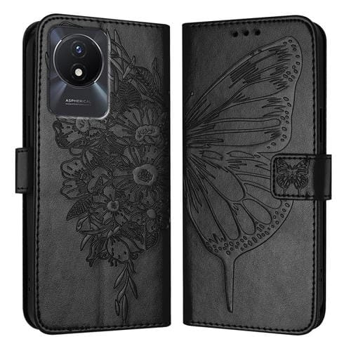 Para Vivo Y02 / Y02A / Y02T / Y11 2023 Funda para Teléfono de Cuero con Mariposa En Relieve (Negro)