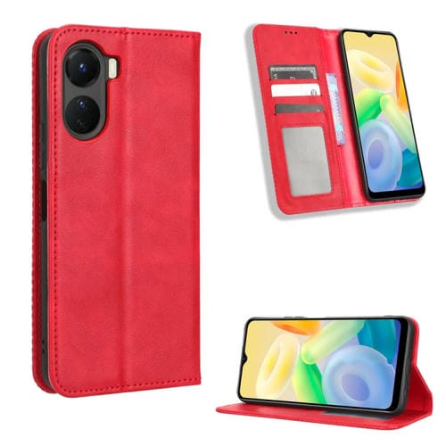 Para Vivo Y16 / Iqoo Z7I Hebilla Magnética Textura Retro Funda de Cuero para Teléfono (Rojo)