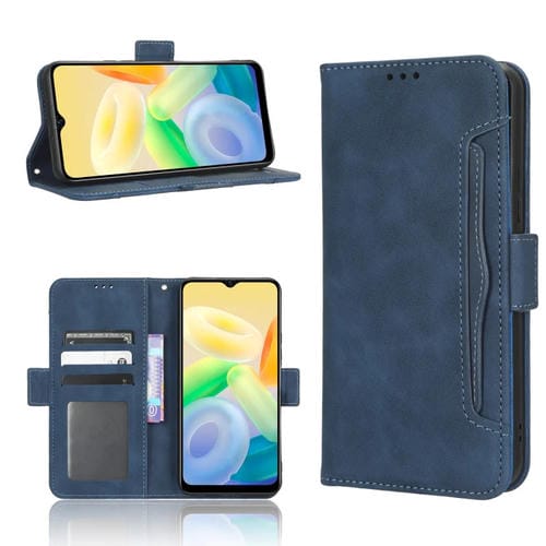 Para Vivo Y16 / Iqoo Z7I Skin Feel Becerro Textura Ranuras para Tarjetas Funda de Cuero para Teléfono (Azul)